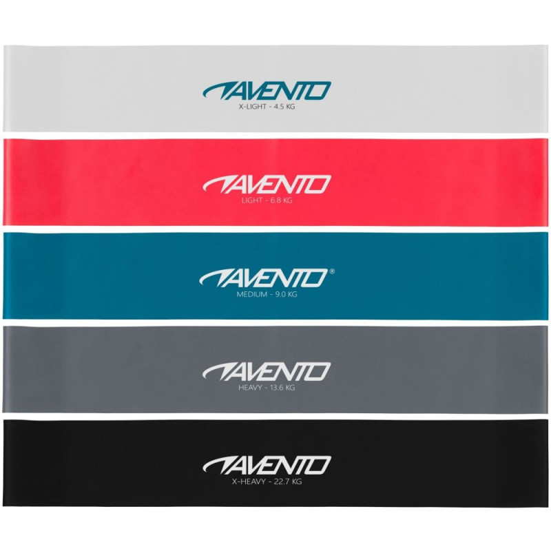 dimensions approx. 60 (circumference) x 5 (width) cm set of 5 different elastic bands: level 1 - thickness 0.4 mm, 4.5 kg pulling force level 2 - thickness 0.6 mm, 6.8 kg pulling force level 3 - thickness 0.8 mm, 9.0 kg pulling force level 4 - thickness 1.0 mm, 13.6 kg pulling force level 5 - thickness 1.2 mm, 22.7 kg pulling force