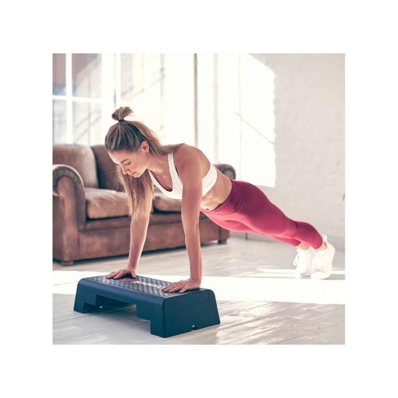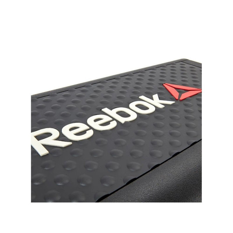 Dimensions: 65 x 32 x 15 cm. Maximum user weight: 110 kg. Materials: PP, TPR. Weight: 2.29 kg. Color: Black. Non-slip surface. Maintaining the core features of the Classic Reebok Step, this Step offers the same durability and professional quality found in gyms, while taking up less space at home. The non-slip rubber feet and textured surface ensure platform stability, and the maximum user weight of 110 kg matches that of the Classic Reebok Step.