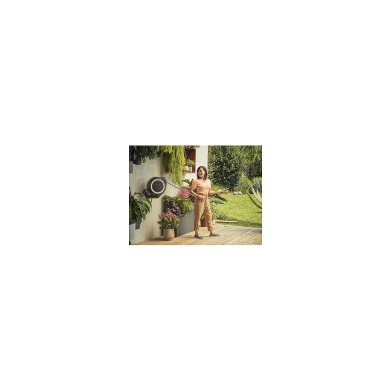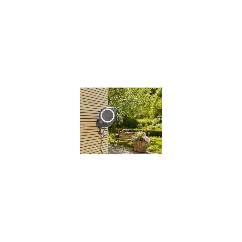 Gardena RollUp M. Tootetüüp: Seinale kinnitatav voolikurull, voolikurulli tüüp: Automaatne, tootedisain: Funktsionaalne. Vooliku pikkus: 20 m, vooliku läbimõõt: 1,1 cm