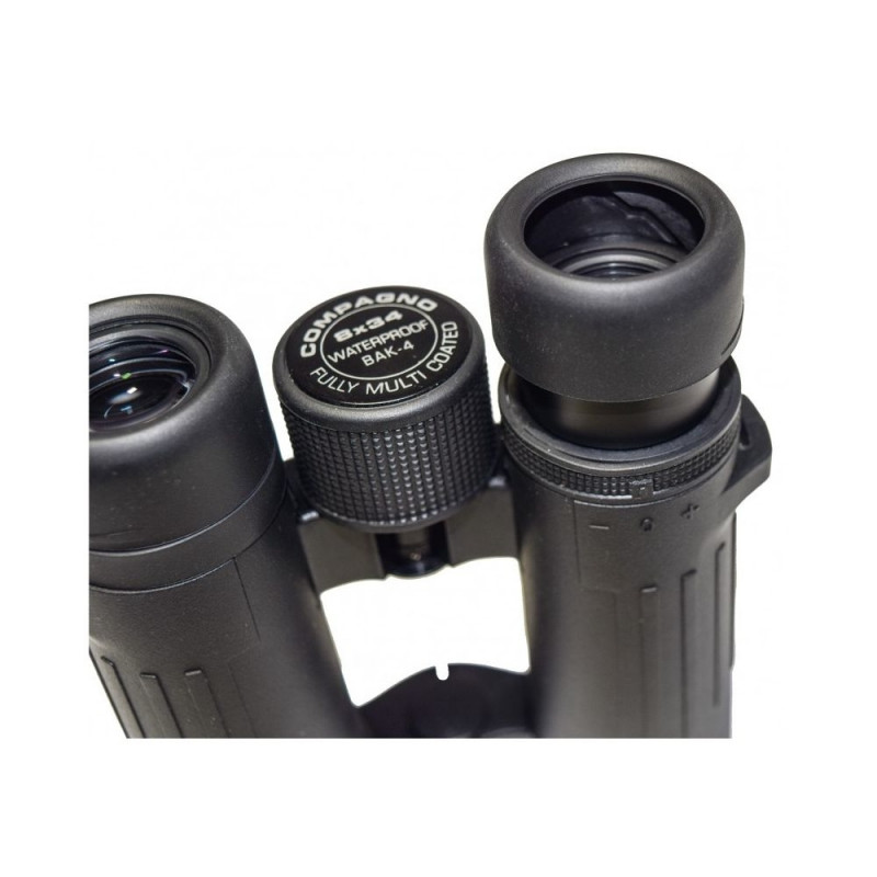 Braun Compagno 8 x 34 WP. Suurendus: 8x, objektiivi läbimõõt: 3,4 cm, prismatüüp: BAK-4 Roof. Laius: 126 mm, sügavus: 130 mm, kõrgus: 45 mm