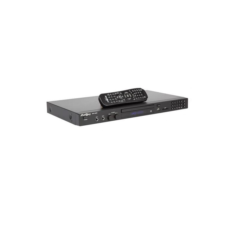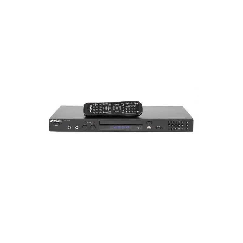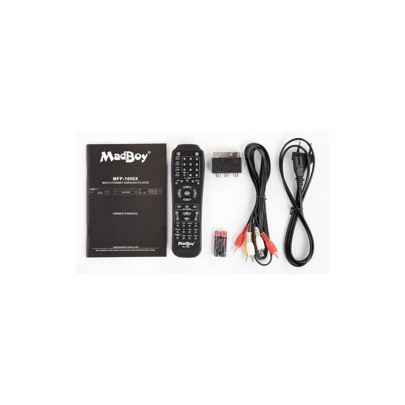 MadBoy® MFP-1000X is the latest version of MadBoy´s legendary DVD-karaoke player.Now you can connect your player to you TV & sound system through HDMI.MadBoy® MFP-1000X is a new generation karaoke & multi format player. It provides in it''s price range overwhelming features, without being difficult to use. You can choose on screen display languages among the six popular languages. MFP-1000X supports CD+G, DVD±R/RW, MP3+G, MP3, MP4, CD-R/RW, VCD, SVCD and Photo CD formats, so it''s the best choice of player for your karaoke or home theater system. MFP-1000 looks stylish and is designed to be an elegant part of your environment wherever it is placed.Player is equipped with SD card reader and USB port, which guarantees faster data transforming than normal USB ports. Because of this feature connecting and using powered external hard-drives is incredibly easy. Watch your photos or films, play your favorite music or karaoke songs from card, USB thumb drive or external hard-drive. Card reader also reads High Capacity (SDHC) cards.Because MadBoy® MFP-1000X is primarily designed to be Karaoke player, we have invested in quality key control, microphone sound and echo. Karaoke singers will love MadBoy''s new inbuilt equalizer (EQ). You do not have to settle for different the engineers´ preset sounds. Just adjust your own sounds like you want. EQ''s every band can be adjusted separately.MadBoy® MFP-1000X is equipped also with copy function. Just press a button and you can copy/rip music from unprotected CD discs to memory stick or card in MP3 format. This way you can collect all your discs into one library and then you can listen to music without annoying disc changing.We kept professional users in our mind while designing MFP-1000X. That is why all the important functions like direct track access are available on the front panel. You can order rack mounting brackets separately for easy rack installing.No expense was spared designing all the features and we only used the highest quality raw materials in the manufacturing process. We just wanted to maximize quality and reliability.MadBoy MFP1000X. Aspect ratio: 4:3, 16:9. Audio decoders: Dolby Digital 5.1, Audio output channels: 5.1 channels. Video formats supported: AVI, XVID, Audio formats supported: DTS, MP3, PCM, WMA, Image formats supported: JPEG. Playback disc formats: CD audio, CD video, DVD-Video, MP3, VCD, Playback disc types: CD, CD-RW, DVD+R, DVD+R DL, DVD+RW, DVD+RW DL, DVD-R, DVD-R DL, DVD-RW, DVD-RW DL, Disc types supported: CD, CD-R, CD-RW, DVD, DVD+R, DVD+R DL, DVD+RW, DVD+RW DL, DVD-R, DVD-R DL, DVD-RW, DVD-RW DL. AC input voltage: 115-230 V, AC input frequency: 50/60 Hz