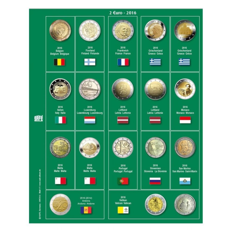 SAFE Premium mündialbum 2€ - köide 3-5 lisalehed
