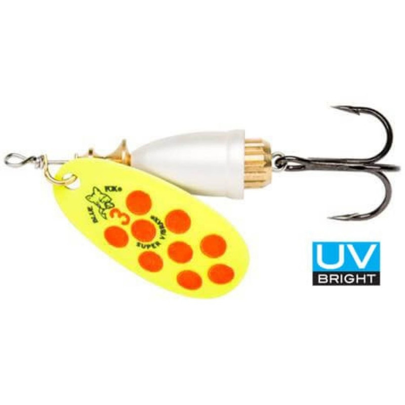 Pöörellant Vibrax® UV. 45° keskmise sügavusega laba, ujumissügavus 0,6-1,2 meetrit. Patenteeritud kaheosaline korpus tekitab madala sagedusega helivibratsioone, mis peibutab kala, samas elimineerides nööri/tamiili keerdumise.