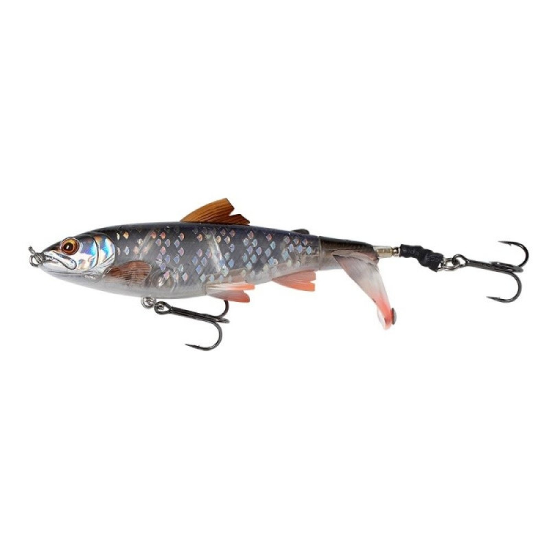 Põhineb beebiforelli 3D-skännil, millel on suurepärased detailid ja realistlik profiil. Pöörduv saba, lööb vette, tekitades valju plopsiva heli, jättes peibutise taha super lainetuse ja mullijälje. Väike metallist neet sabas tugevdab heli!