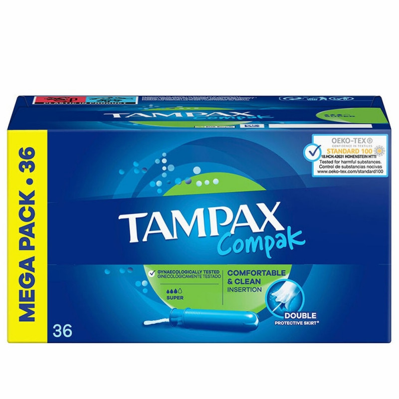 Super tampoonid Tampax Compak 36 Ühikut on eksklusiivne, tippkvaliteetne kehahooldustoode. Kui otsite parimaid kehahooldustooteid, siis 100 % originaalsed Tampax tooted on just need, mida Te otsite.