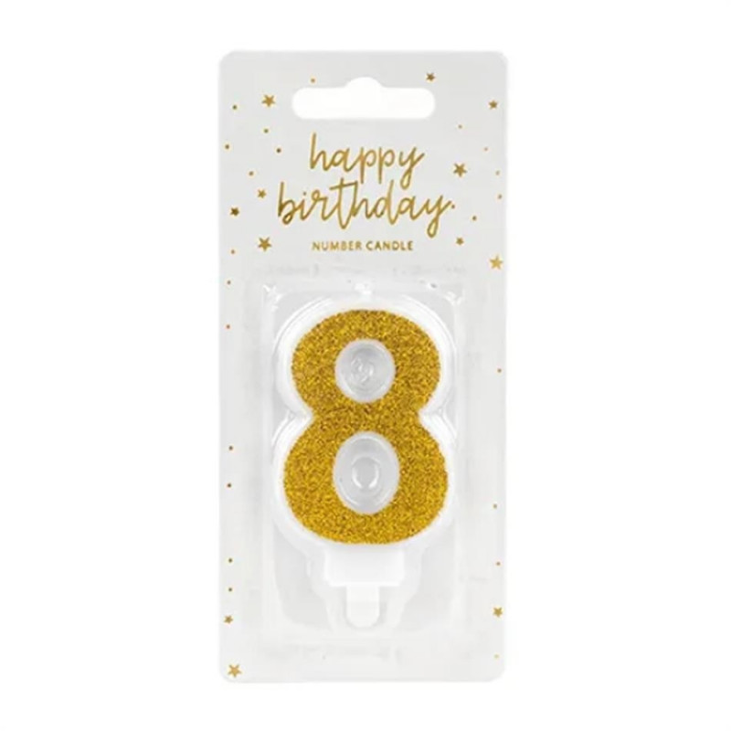 PartyDeco tordiküünal, kuldne, 7 cm, number 8