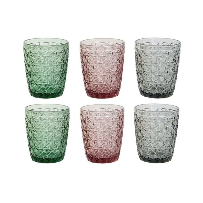 Klaaside komplekt DKD Home Decor Roheline Hall Roosa Kristall Reljeefiga 240 ml (6 Ühikut)