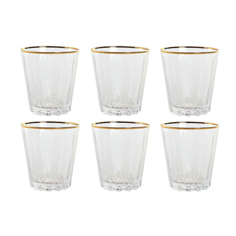Klaaside komplekt Home ESPRIT Läbipaistev Kuldne Kristall Reljeefiga 350 ml (6 Ühikut)