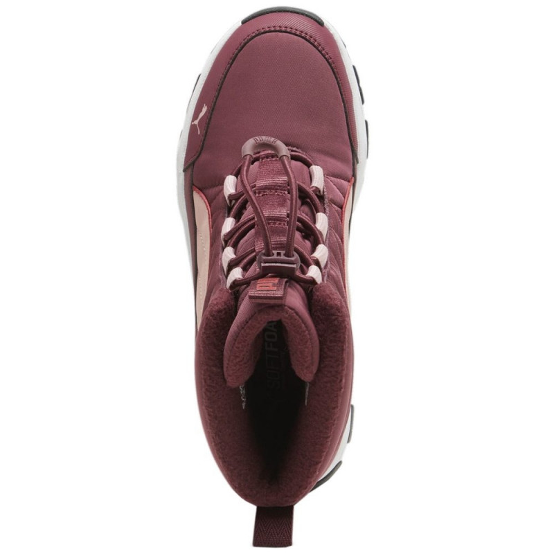 Buty dla dzieci Puma sprawdzą się w okresie zimowym. Wysoki kołnierz. System szybkiego sznurowania zakończony stoperem. Syntetyczno-tekstylna cholewka. Miękki kożuch z syntetycznego materiału miękko otula stopy pomagając w utrzymaniu ciepła. Pętelka z tyłu i na języku. Podeszwa środkowa z pianki EVA. Gumowa podeszwa zewnętrzna.