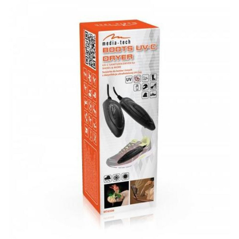 High energy UV-C radiation triggers photochemical reactions. The wavelength of 253.7 nm is absorbed by the nucleic acids of the cell and leads, depending on the dose, to kill or damage bacteria and mycelium germs.Media-Tech MT6506. Heating power: 8 W, AC input voltage: 220 - 240 V. Product main colour: Black, Cord length: 1.4 m. Width: 55 mm, Depth: 140 mm, Height: 35 mm