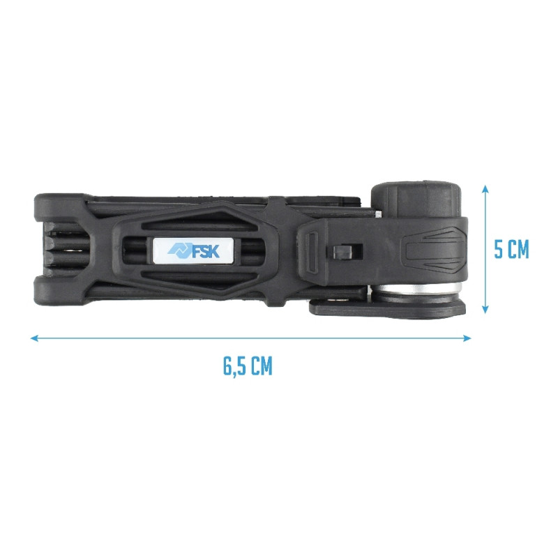 Ferrestock kokkupandav kaablilukk on vastupidav ja praktiline turvalahendus jalgrataste kaitsmiseks, ühendades täiustatud funktsionaalsuse ja kõrge vastupidavusega materjalid. Kogu pikkusega 69 cm lukk paistab silma sisemiste nikliga kaetud karastatud terastangide konstruktsiooniga, mis tagab suure vastupidavuse lõikamise ja puurimise katsete vastu. Kokkupandav disain lihtsustab transporti ja hoiustamist, lisaks on kummist hoidik, mis võimaldab lukku mugavalt paigutada jalgratta raami sisse. Selle süsteemi turvatase on 11-st 15-st, mis asetab selle keskmise ja kõrge turvaklassi, sobides nii linnakeskkonnas kui ka maapiirkondades vargusevastaseks kaitseks. Komplektis on kaks turvalukuvõtit, nii avamiseks kui sulgemiseks, mis takistavad võtme eemaldamist, kui lukk on avatud, suurendades turvalisust ja vältides juhuslikke manipuleerimisi. Avamiseks tuleb vahelinke korrektselt lahti voltida enne võtme sisestamist, mis on algselt lukustatud asendis; võtme 90º päripäeva keeramisel avaneb mehhanism ja lukustuslink liigub, vabastades lukustuse. Materjalide ja mehhanismi detailne täpsus annab tootele kõrge usaldusväärsuse ning tasakaalu turvalisuse ja kasutusmugavuse vahel. Kokkuvõttes on Ferrestock kokkupandav kaablilukk tõhus ja vastupidav valik neile, kes soovivad oma jalgratast mugava ja kergesti käsitletava seadmega kaitsta.