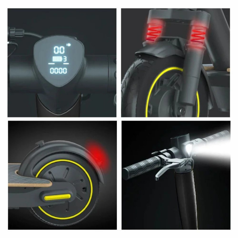 Funktsioonid 10" täispuhutavad rehvid Võimas 500W mootor Vahemaa: 50 km Tippkiirus: 35 km/h Alumiiniumist struktuur Valgustus: ees, taga Kiire ja lihtne voltimissüsteem Aku: 10Ah/48V Eesmine trummelpidurTehnilised andmedMootor: 500W, 48V, harjadeta Maksimaalne kiirus: 35km/h Lisafunktsioonid: esi- ja tagavalgustus, tugi Ratta läbimõõt: 10" Juhtraua kõrgus: 128 cm Amortisatsioon: Jah, esirattal Pidur: trummel ees Maksimaalne sõidunurk: 15° Kiirus: 50km/h Sõidurežiimide arv: 3 Kasutaja kaal: 120 kg Toote kaal: 18 kg Toide: DC 54,6V, 2A Aku maht: 48V, 10,4Ah, 499,2Wh, liitiumioon Veekindel: IPX4 Rakendus kasutamiseks: MiniRobotKomplektis: Roller 42V 1,5A toiteadapter Kasutusjuhend