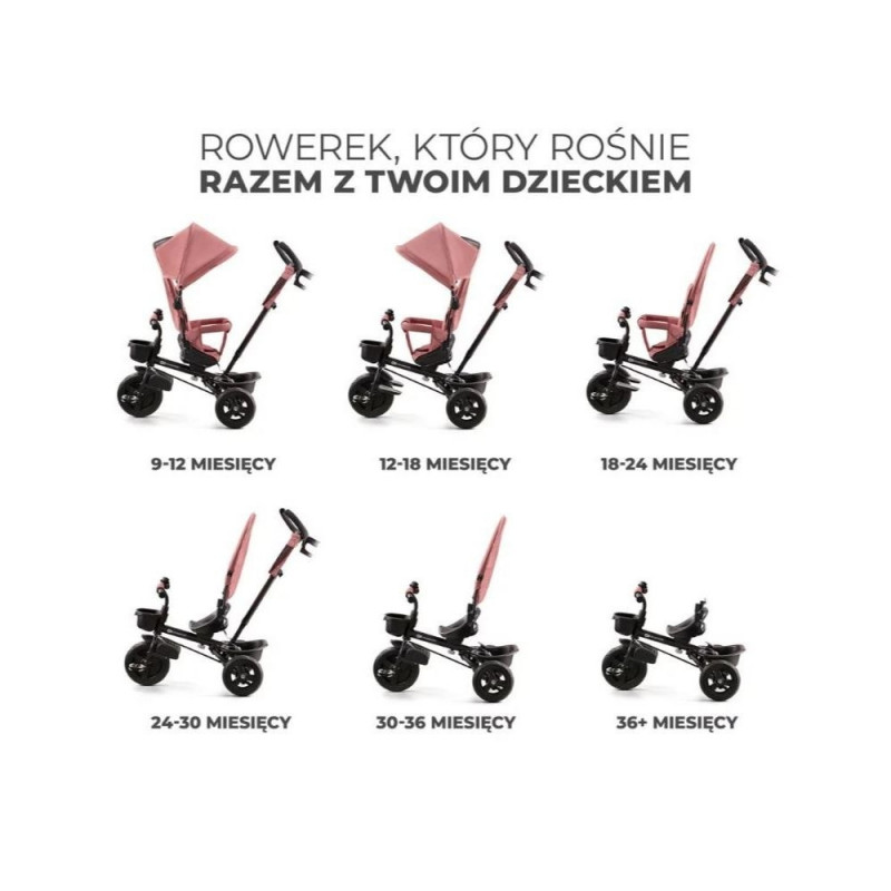 AVEO-l on koguni 6 konfiguratsioonivõimalust, mida saab lihtsalt kohandada vastavalt lapse vajadustele. Kolmerattaline jalgratas sobib väikelastele alates 9. elukuust ja aitab neil jalutuskäikude ajal uusi oskusi omandada.