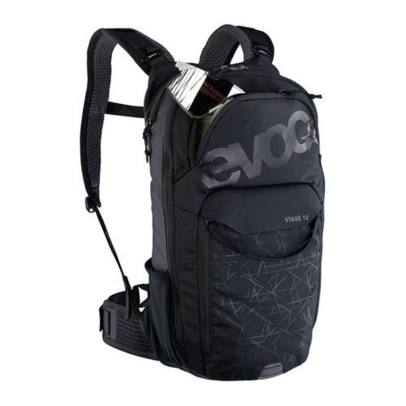 The EVOC Stage 12 liter volume backpack is a multi-faceted, technical daypack excellent features for mountain biking and hiking. It’s hydration system compatible with room for a 2 liter water bladder and provides uncompromising carrying comfort via the freely moving BRACE LINK that allows the shoulder straps to adapt to the individual shoulder width of the wearer.EVOC Stage. Backpack type: Cycling backpack, Product main colour: Black, Material: Nylon, Polyrattan. Volume: 12 L, Hydration reservoir capacity: 2 L