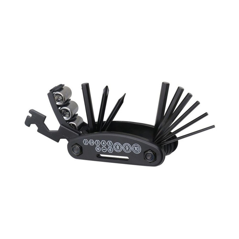 Komplekti kuuluvad: lamekruvikeeraja ja ristkruvikeeraja, kuuskantvõtmed suurustes 2 kuni 6 mm, mutrivõtmed 8 mm, 10 mm, 15 mm, kodaravõti 14GE, padrunivõtme pikendus ning kolm padrunit: 8 mm, 9 mm, 10 mm. Kõik see kompaktses vormis, mis mahub ideaalselt rattaseljakotti ja on alati käepärast, kui seda vajad.