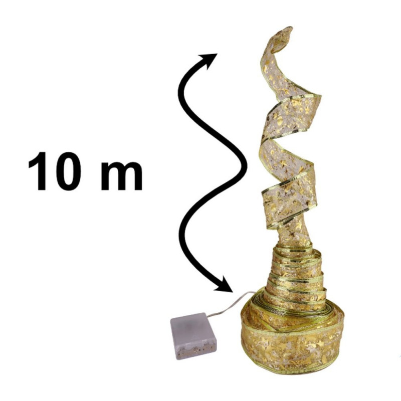 Jõulu LED-lint jõulupuu jaoks. Lisab piduliku puudutuse igale interjöörile! 8 valgustusrežiimi. Toiteallikas: 3 AA patareid. Värv: pael - kuldne, tuled - soe valge. Tulede arv: 100LED. Pikkus: 10m.Toode on arhiivis, kuvatakse vaid informatiivsel eesmärgil.