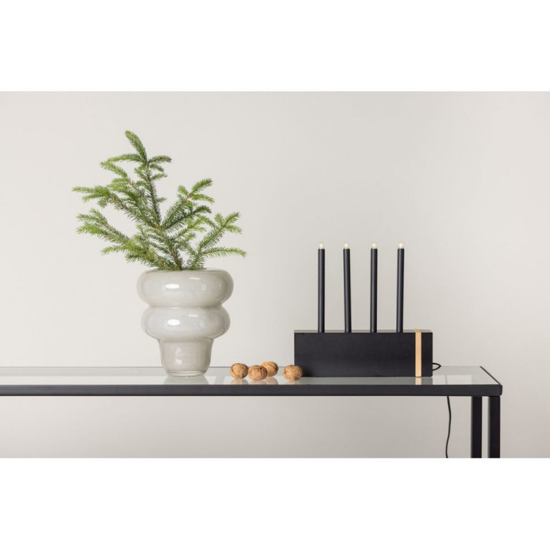 Andke oma kodule hubane puudutus meie musta Advendi küünaljalaga Fjällberget seeriast. See ilus valgustuslahendus ühendab stiilse minimalismi ajatu disainiga! Alus on valmistatud männipuidust elegantse musta ristkülikukujulise kujuga, muutes selle stiilseks sisustuselemendiks igas toas. Neli peent lampi kiirgavad pehmet valgust, luues lõõgastava ja meeldiva tunde. Suurepärane harmoonilise meeleolu loomiseks õhtusöökide, lõõgastavate õhtute või romantiliste hetkede ajal. Mõõdud: 25x25x6cm.