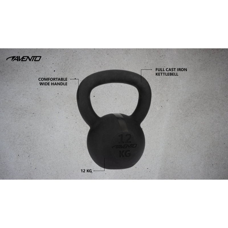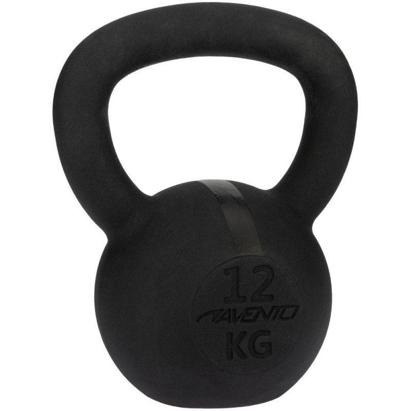• full cast iron kettlebell • round ball with flat bottom and wide ergonomic handle • easy to clean and store • coloured ring and embedded weight indication • weight approx. 12 kg Brand Avento Colour Black/Silver grey (BLK)