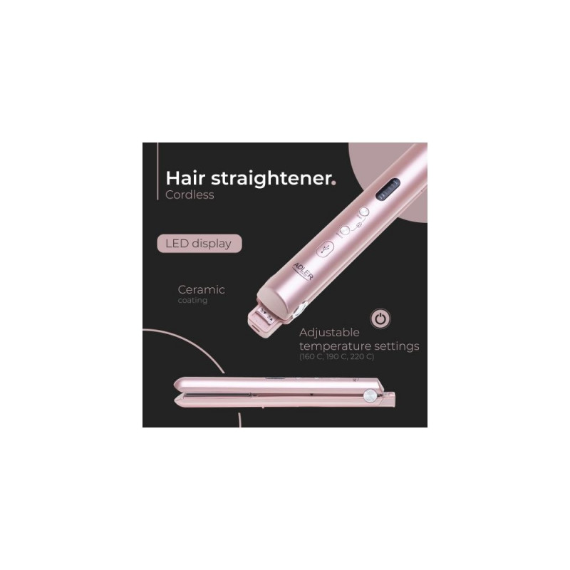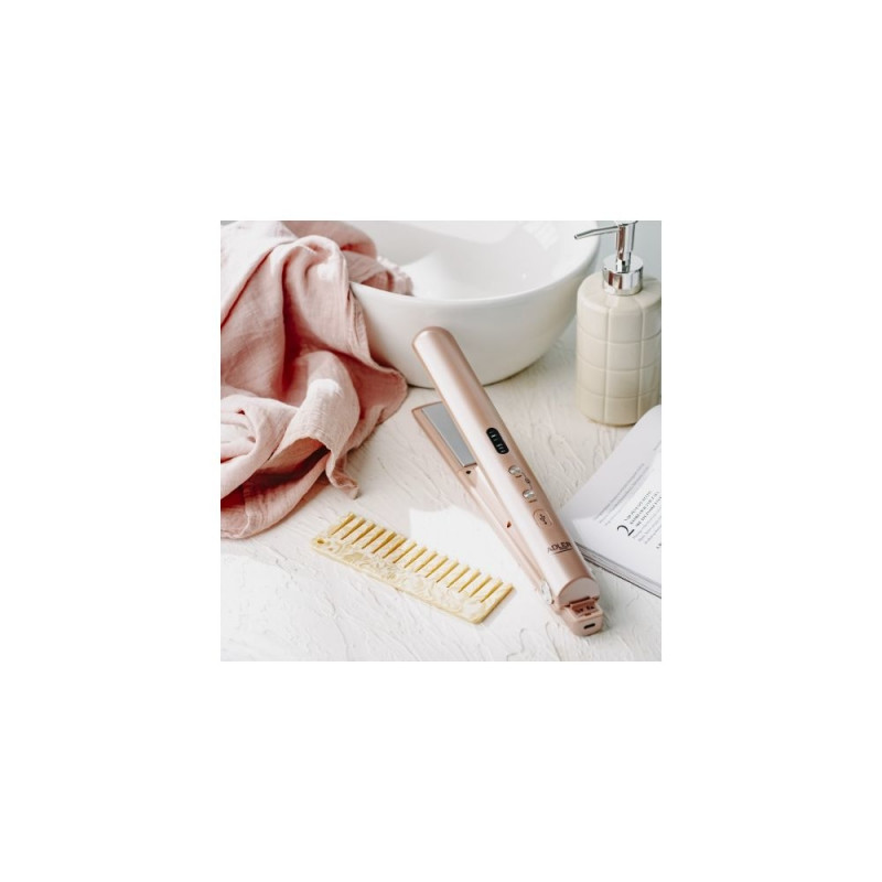 Tutvu Adler AD 2327 juhtmevaba reisipardliga, mis on ideaalne neile, kes soovivad nautida siledaid ja läikivaid juukseid kõikjal, kus nad viibivad! Tänu keraamilistele liikuvatele plaatidele mõõtmetega 22 x 90 mm tagab see ühtlase soojusjaotuse ja suurepärase juuste silumise.