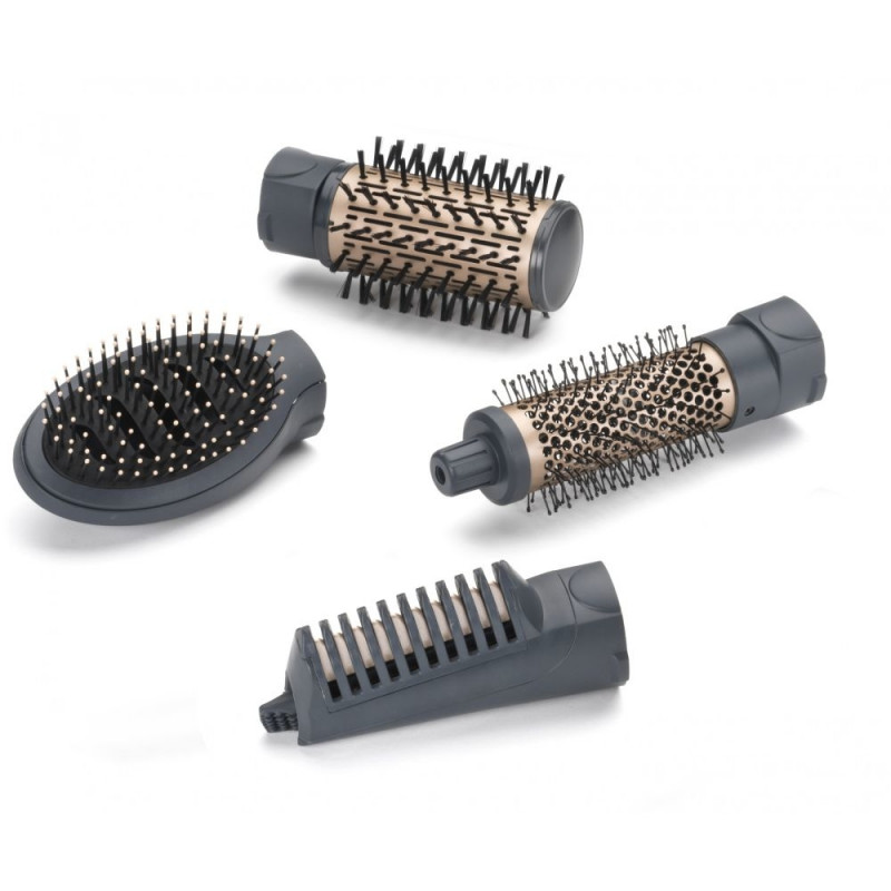 Seadme võimas 1000 W mootor tagab kiire ja ühtlase õhuvoolu, mis aitab juukseid kiiresti kuivatada ja kujundada. Ioniseerimistehnoloogia vähendab staatilist elektrit ning muudab juuksed siledamaks ja läikivamaks. Komplektis on mitu vahetatavat otsikut, sealhulgas 50 mm läbimõõduga termohari, 20 mm läbimõõduga harjasotsik, sirgendusotsik ja kontsentreeritud õhuvooluotsik. Tänu sellele saad valida just endale sobiva stiili ning saavutada täpselt sellise tulemuse, nagu soovid.
