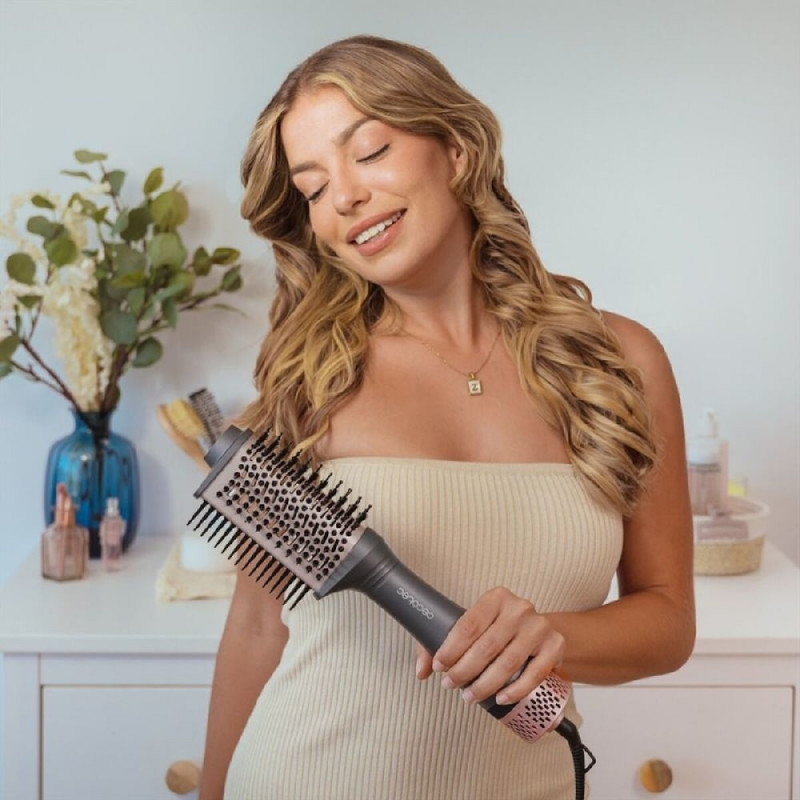 Cecotec CeramicCare Unique Triangle soenguhari on täiustatud juuksehooldusvahend, mis on loodud neile, kes soovivad professionaalseid tulemusi kodus, ühendades tõhususe ja juuksehoolduse ühes seadmes. Tänu võimsale 1200 W mootorile tagab see kiire kuivatamise ja tõhusa töö, aidates säästa aega igapäevases ilurutiinis. Uuenduslik kaardus disain kolmnurkse peaga ja koonusekujuline ots võimaldavad harjal kohanduda pea kujuga, hõlbustades juuksejuurtele ligipääsu ja andes koheselt volüümi. Pehmed harjased harutavad juukseid õrnalt ilma tõmbamata, samas kui keraamiline kate tagab ühtlase soojusjaotuse, vähendades kuumakahjustusi ja kaitstes juukse struktuuri. Lisaks on harjal ioonitehnoloogia, mis aitab eemaldada kahu ning annab sileda, läikiva ja säravata juuksepinna, rõhutades juuste tervislikku välimust. See soenguhari pakub viit funktsiooni ühes seadmes: kuivatamine, lahtiharutamine, sirgendamine, volüümi andmine ja vormimine, sobides erinevate stiilide ja vajadustega. Valmistatud Hispaanias ning vastupidavast mustast plastikust korpusega, tagab see vastupidavuse ja kerguse kasutamisel, samas kui toitekaabel võimaldab pidevat ja stabiilset tööd. Tulemuseks on mitmekülgne toode, millega saab luua nii pehmeid laineid, volüümikat sirgendust kui ka defineeritud otsi – ideaalne neile, kes hindavad igapäevaselt mitmekülgsust ja kaitset. Cecotec CeramicCare Unique Triangle on terviklik lahendus juuste kujundamiseks ja hoolduseks, vastates tänapäevastele nõudmistele jõudluse ja juukse tervise osas.