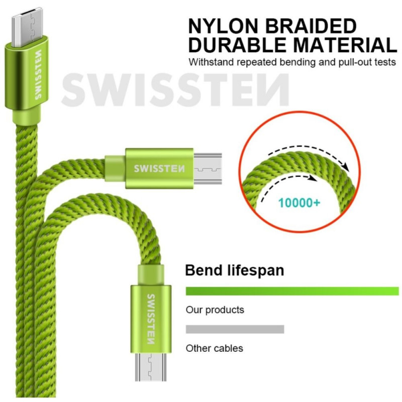 Swissten Textile Universal Micro USB Data and Charging Cable 2m