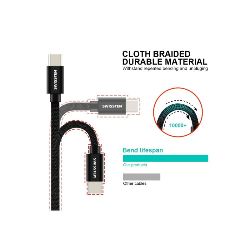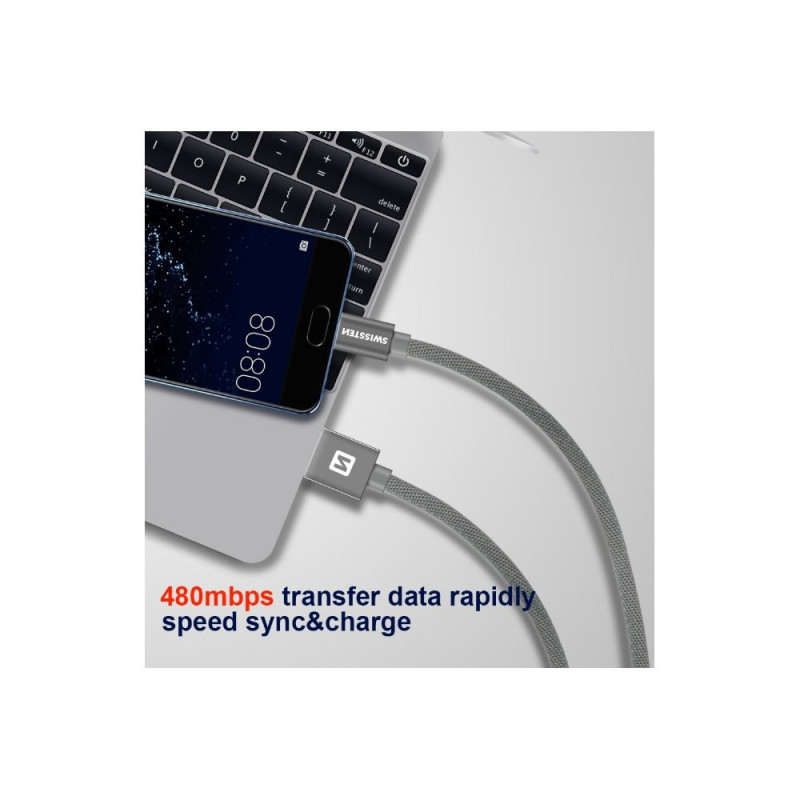 High quality textile data cable USB / Lightning with length of 3,0 m. The cable reinforced to deliver a higher current (up to 3A) and can handle fast 480 Mb/s data transfer. Packed in Swissten retail pack.