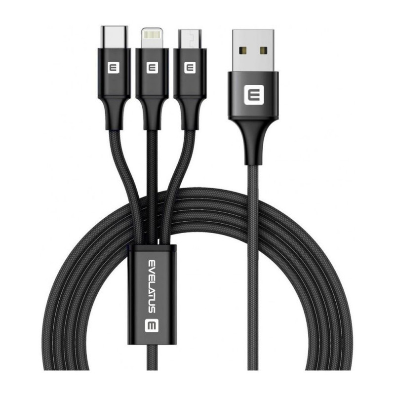 Evelatus - Evelatus Data cable 3in1 (Ligtning, Type-C, Micro USB ) LTM01 Black