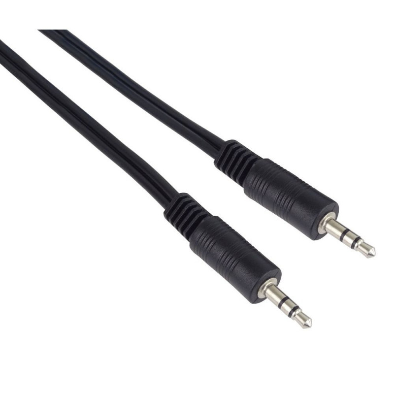 Cable for connecting two audio systems, such as mobile phones, tablets, computers and amplifiers - Molded stereo jack-jack Male-Male connectors - 3.5 mm stereo jack connector nickel-plated - Male-male connection cable - Three-conductor connection - Cable color: black - Packaged in a PE bag with description and EAN code - Cable length: 5m