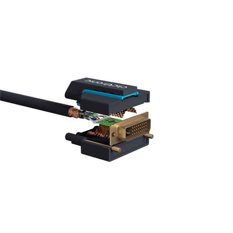 ClickTronic HQ OFC kabel DVI-D(24+1) male <> DVI-D(24+1) male, Dual Link, 20m DVI Dual Link; DVI-D plug <> DVI-D plug 24+1 DVI-D connection cable (DVI-D plug/DVI-D plug)(24+1pin) 7,5 m video cable for HD signals up to QXGA / FullHD 7,5 m video cableOsta kohe, viimased eksemplarid laos!