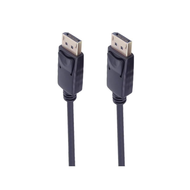 Cable for digital video / audio transmission up to a max. data rate of 18 Gbit/s. Display port allows an innovative 2-way communication between a PC and a screen. Particularly suitably for presentation of 3D games and high-resolution graphics. - Max. resolution 4K×2K@60hz - DisplayPort 1.2 - Max. data rate of 18 Gbit/s. - Resolution: WQXGA (2560×1600) -> 1080p compatible. - DisplayPort (20-pin) plug <=> DisplayPort (20-pin) plug - Molded housing - 20-wire cable, double shielded, AWG30 - Gold plated connectors - Mechanical plug interlock - Plug and Play compatible - Support of HDCP und DPCP - Color: black - Length: 3m