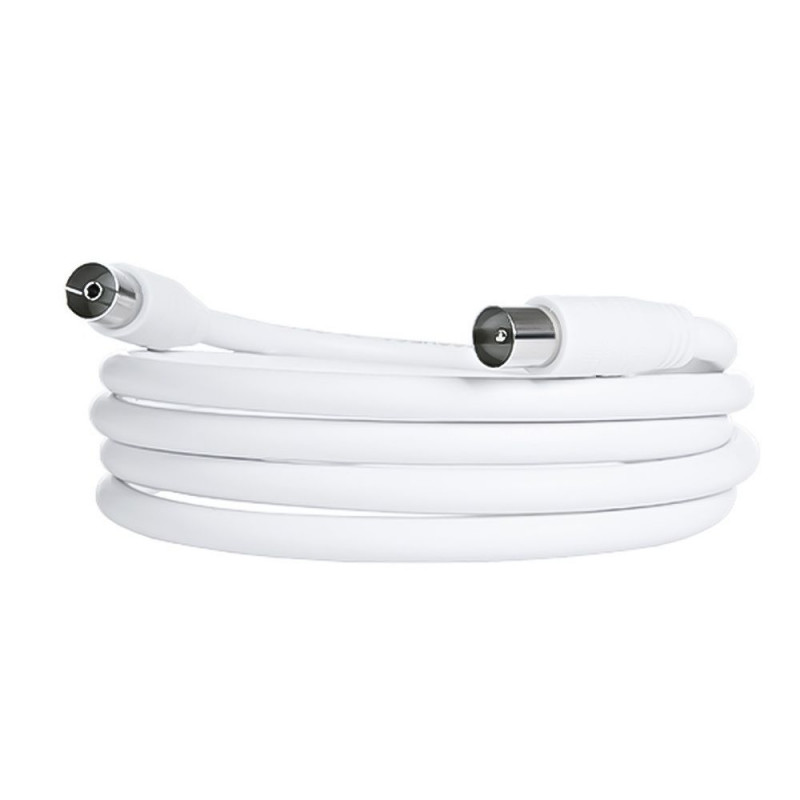 TV connecting cable M/F 75 Ohm - 3C2V coaxial cable - Subscriber cord for connecting the TV to the antenna socket - IEC male-female connectors - Quality shielding - Length 5m