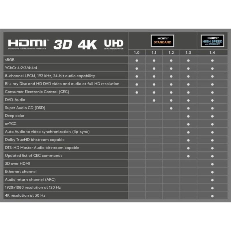 HDMI type A (19pin) plug <=> HDMI type A (19pin) plug • gold plated connectors • supported resolutions: up 4096 x 2160 pixels non-interlaced, or lower 1080p FULL HD/1080i/720p/720i • molded housing • support HDMI 1.4 a lower • support 4K, Deep CoOsta kohe, viimased eksemplarid laos!