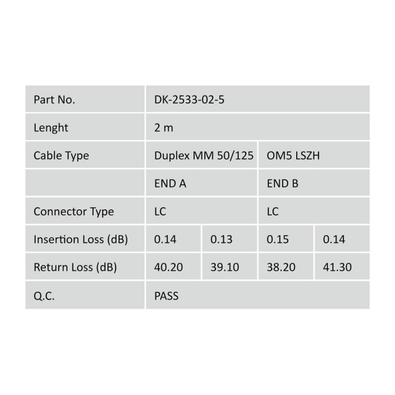 DIGITUS Professional Fiber Optic Multimode Patch Cord, LC / LC Best performance and link quality for your network. DIGITUS Fiber Optic Patch Cord, LC to LC, Multimode, OM5, 50/125 µ, Duplex Length 10m Duplex cable LSOH Connector with ceramic ferrOsta kohe, viimased eksemplarid laos!