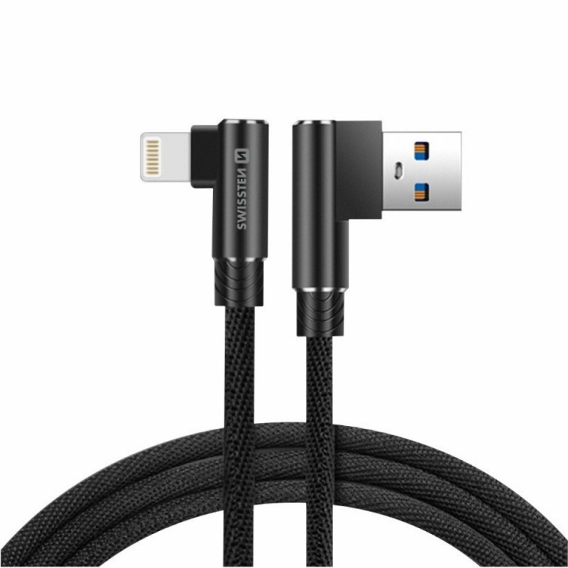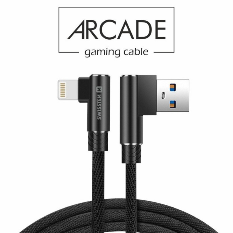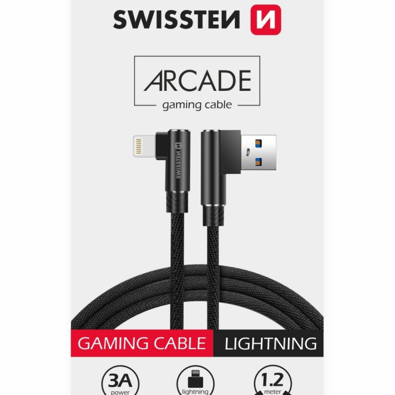 Swissten Arcade data and charging cable is 1.2 m long and has L-connector for convenient charging when playing games or watching videos. The cable is reinforced and thus transmits more current (up to 3A) and can handle fast data transfer of 480 Mb / s. Packed in SWISSTEN retail pack.