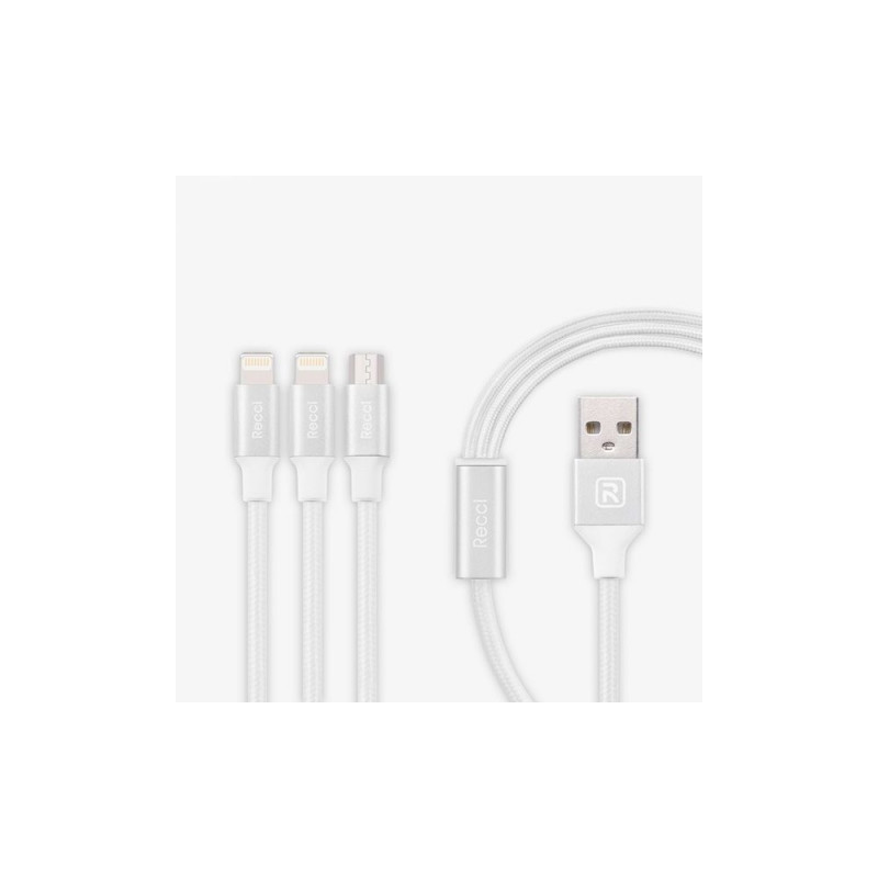 Recci Universal Delicate RCS-H120 3 in 1 Micro USB + 2 x Lightning Fast Charging 1,2 m White