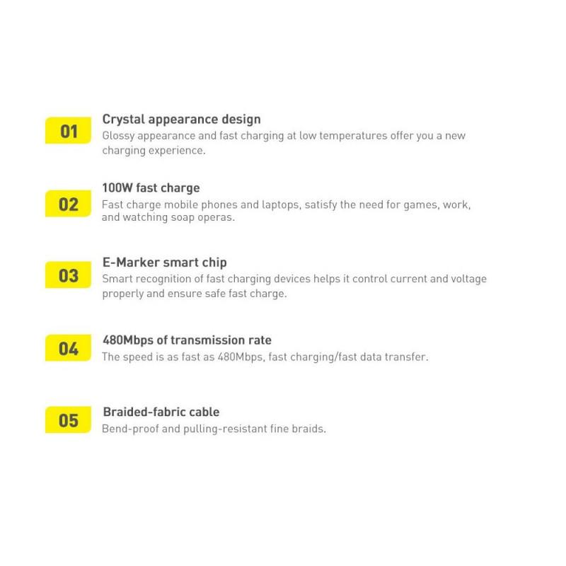 Kaabel Baseus Crystal Shine seeria USB-C - USB-C peamised eelised: