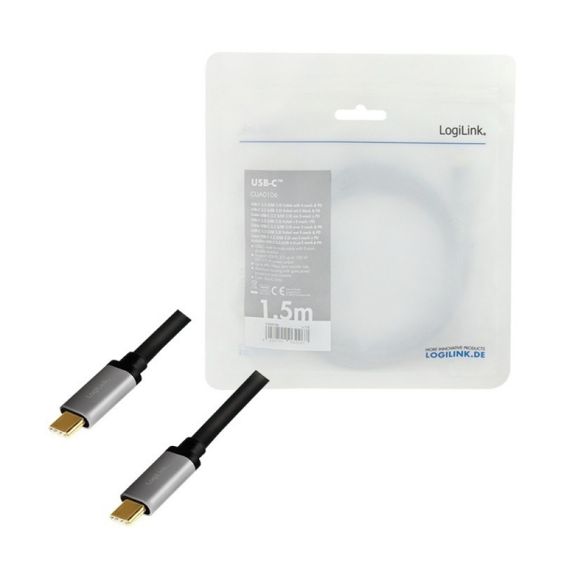 USB-C M/M cable, PD, alu, 1.5m
