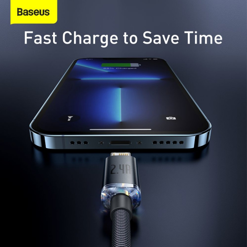 USB Cable for Lightning Baseus Crystal, 2.4A, 1.2m (Black)