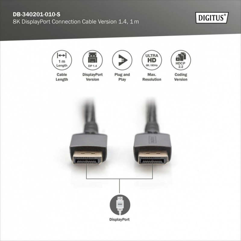 PREMIUM DisplayPort 8K60Hz UHD ühenduskaabel