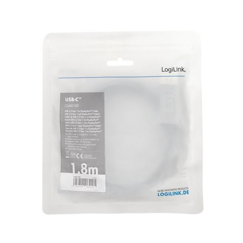 | Other features | Connector 1: USB-C (male) Connector 2: DisplayPort (male) Comply with USB 3.2 Gen1 SuperSpeed Connected devices must support USB-C DP/HDMI Alternate Mode Resolution: Ultra HD up to 4K/120 Hz (3840 x 2160) 2x shielded Aluminum housing Gold plated |