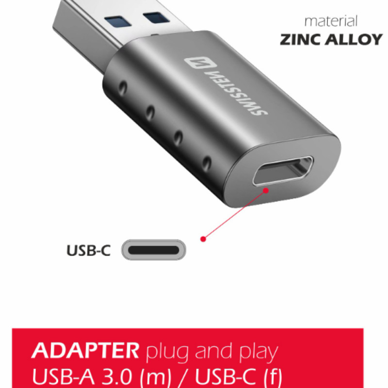 SWISSTEN ADAPTER USB-A(M) / USB-C(F) is used for connection of accessories with USB-C connector to device with USB-A input. Packed in SWISSTEN retail packaging.