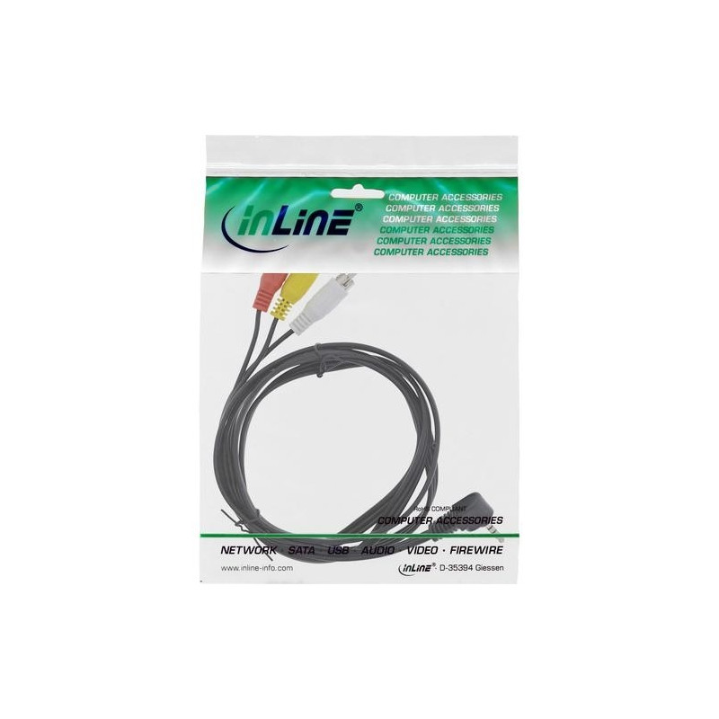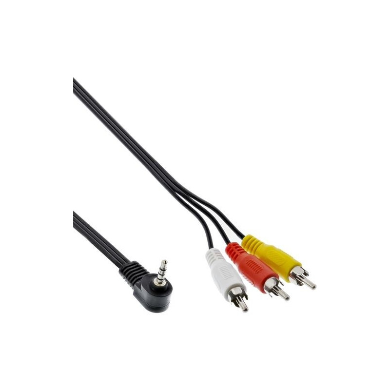 Use this cable to connect camcorders etc. with respective output connectors to a TV. Audio and video signals are transmitted from camcorder to 4 pin. socket plug. 3 color-coded cinch plugs are connected to TV etc..InLine Audio/Video Cable 3.5mm 4 Pin male / 3x RCA for Digital Camcorder 1.5m. Cable length: 1.5 m, Connector 1: 3.5mm, Connector 2: 3 x RCA