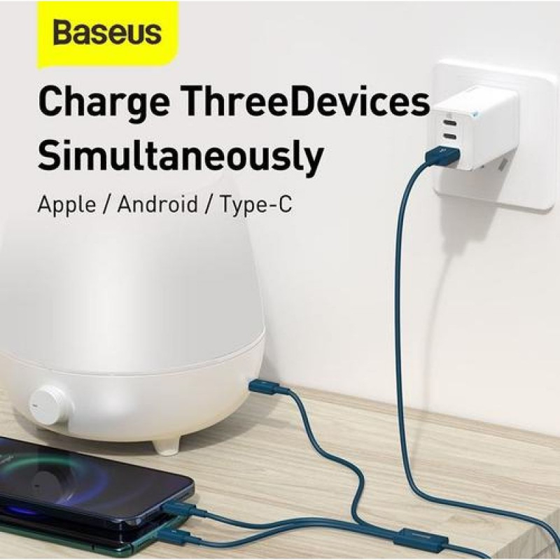 <br />Baseus CAMLTYS-03. Cable length: 1.5 m. Connector 1: USB A, Connector 2: USB C/Micro-USB B/Lightning, Maximum data transfer rate: 0.48 Gbit/s, Product colour: Blue
