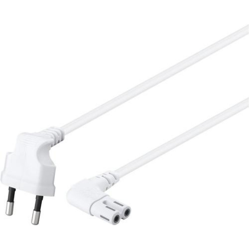 Euro plug (type C, CEE 7/16) > appliance socket C7Goobay Connection Cable Euro Plug Angled at Both Ends, 1.5 m, White. Cable length: 1.5 m, Connector 1: Power plug type C, Connector 2: C7 coupler, Cable type: H03VVH2-F2. Input voltage: 250 V