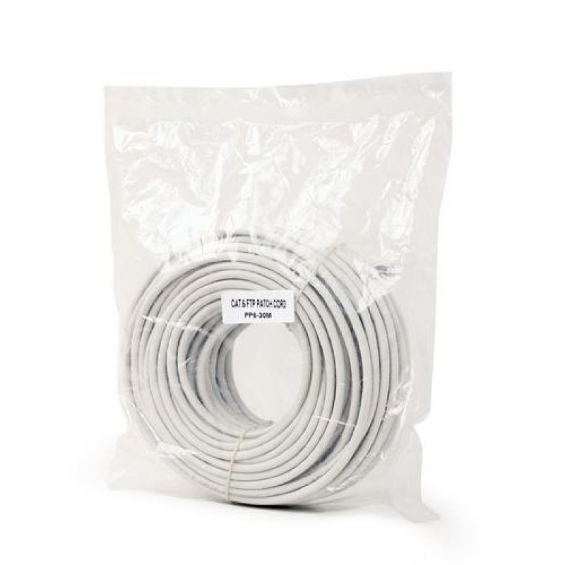 CAT6 AWG26 stranded foil shielded patch cord with moulded strain relief 50u'' 8P8C plugs, 30m<br>Snagless bootsGembird PP6-30M. Cable length: 30 m, Cable standard: Cat6, Cable shielding: F/UTP (FTP), Connector 1: RJ-45, Connector 2: RJ-45, ProdToode on arhiivis, kuvatakse vaid informatiivsel eesmärgil.