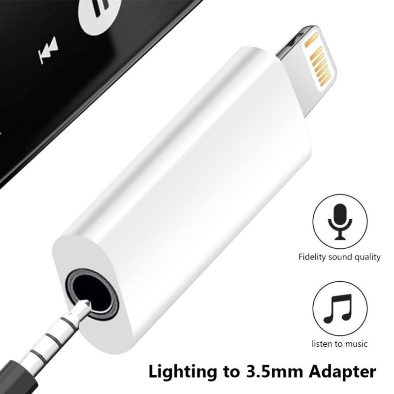 AUX adapter from Lightning to 3.5m jack for Apple phones that do not have a 3.5mm audio output. The adapter is designed to connect headphones with a microphone or transmit a stereo signal.
