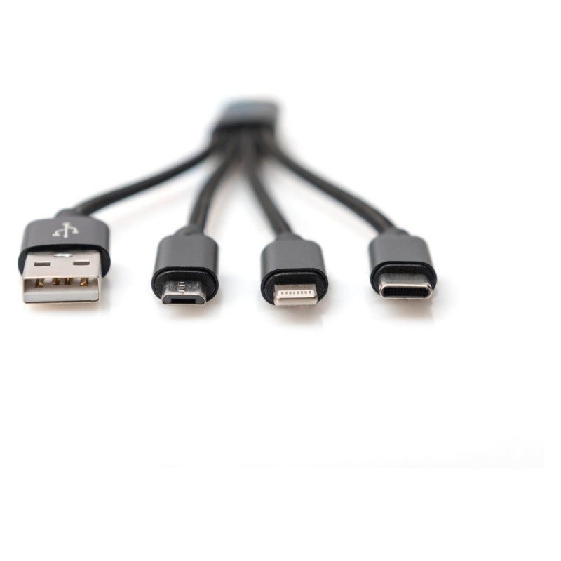 "DIGITUS 3-in-1 Ladekabel USB A Lightning + Micro USB + USB-C"