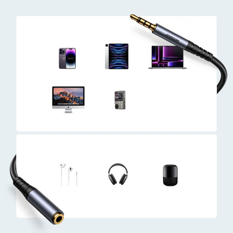 Universaalne ühendusJoyroomi helikaabel võimaldab lihtsat ühendamist telefonide, tahvelarvutite, sülearvutite ja lauaarvutitega, millel on 3,5 mm kõrvaklapid või kõlarid, võimaldades heli vaba edastamist.
