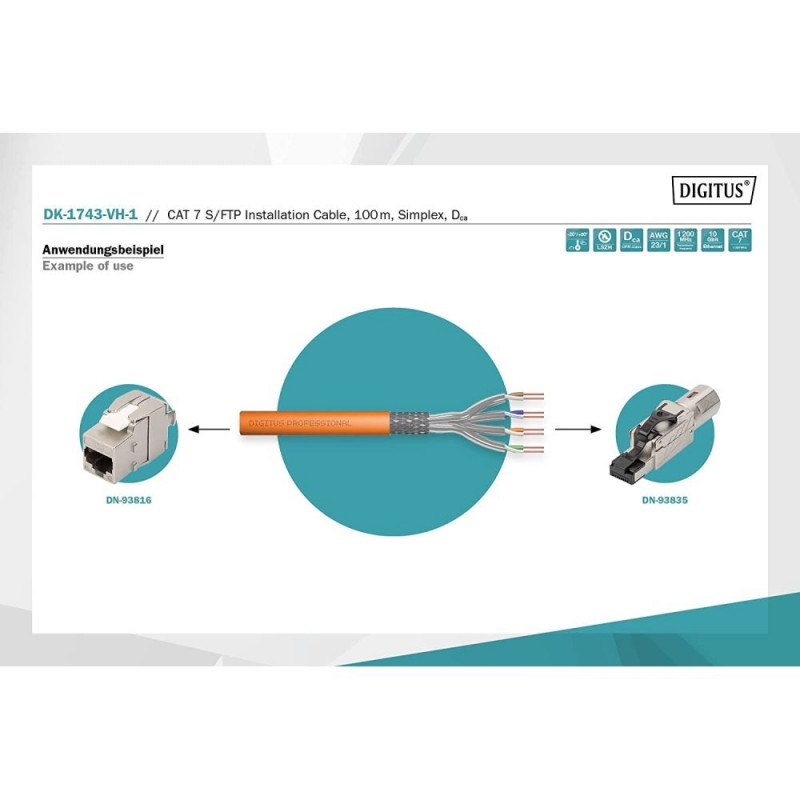 Digitus Professional Cat7 S/FTP paigalduskaabel simplex, Dca (oranž, 100 meetri rull)